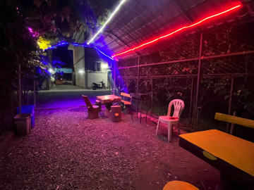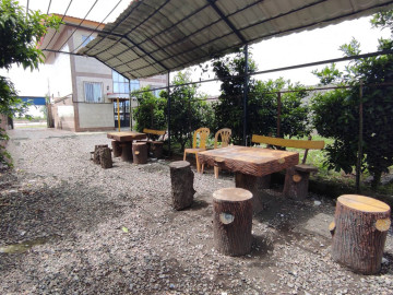 - حیاط مجتمع شامل میز و صندلی در آلاچیق