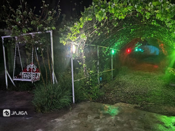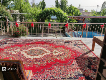 ایوان بزرگ این ویلا محیطی دلنشین برای دورهمی میهمانان فراهم می کند و محیط اطراف حیاط آن با دیواری که از بیرون مشرف نیست، محصور می باشد، به علاوه استفاده از میوه درختان حیاط آن برای میهمانان بلامانع است.