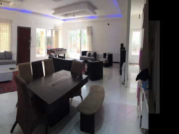 ۱۰۰۰متر باغ ۱۱۰متر بنا دوخواب یکی مستر سرویس ایرانی و فرنگی مبله کامل لوازم آشپزی تا ۶ نفر استخر رو باز تسویه ۲۴ساعته فوتبال دستی آلاچیق دارای مبلمان باغی میزو نیمکت چوبی پارکیک ۵ خودرو شهرکی با امنیت کامل سرمایش کولر آبی گرمایش پکیج و رادیاتور سیستم صوتی و تی وی