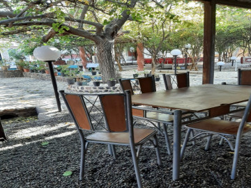 در حیاط این اقامتگاه درختان انگور و انار سرسبز همراه با آلاچیق هایی قرار دارد که فضایی دلنشین را ایجاد کرده است. در این اقامتگاه انواع صبحانه و غذاهای محلی با هزینه جداگانه سرو می شود. این اقامتگاه بومی فاصله کمی با باغ شاهزاده و شاه نعمت الله دارد.