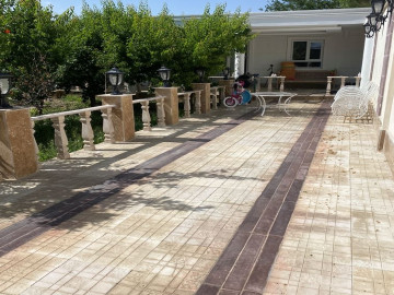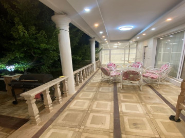 تراس مسقف و بزرگ داری میز صندلی ۶ نفره