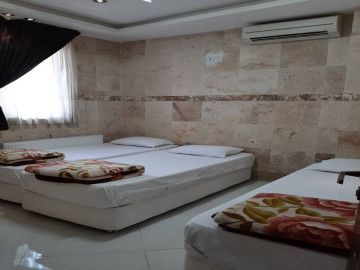 اجاره سوئیت تمیز در اندرزگو مشهد با متراژ 70 و دو خواب دارای 8 تخت یک نفره و تمامی امکانات آشپزی _ سیستم سرمایشی و گرمایشی نیز داراست . برای نفرات اضاف ( حداکثری ) فقط پتو و بالشت برای مسافرین موجود می باشد . همچنین دسترسی راحت و آسان به سوپر مارکت . مرکز خرید . بیمارستان و ... نیز دارد برای عا