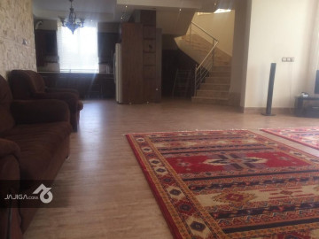 ویلا دوبلکس است، طبقه پایین شامل سالن پذیرایی، آشپزخانه، دو اتاق خواب و سرویس فرنگی، ایرانی و حمام میباشد و در طبقه بالا هم یک اتاق خواب مستر قرار دارد که دارای سرویس فرنگی و حمام اختصاصی میباشد.