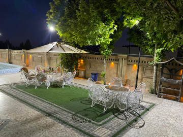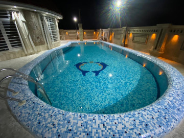 باغ ویلا استخر دار در گویم شیراز باغ ویلا با زیربنای 1800متر است که 500متر آن شامل ویلا و بقیه حیاط است حیاطی بزرگ و دلباز با فضای سبز،همراه با آلاچیق چوبی برای هواخوری است وقتی وارد محوطه ویلا می شوید شاهد منظره بسیار زیبا در اطراف آن خواهید بود که درهر دو طرف مسیر درختان و گل کاری شده است این