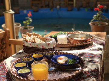 اقامتگاه سنتی "پنج دری" در زمینی به مساحت ۷۲۰متر در مرکز شهر و بافت قدیم شهر شیراز واقع شده است. پیشینه این اقامتگاه به اواخر دوران قاجاریه بازمی گردد و قدمت ان حدود ۱۲۰ سال میباشد. اقامتگاه "پنج دری" دارای ۱۰ اتاق اقامتی است که در ۲ طبقه بنا شده است. از مزایای مهم و قابل توجه این اقامتگاه میتوان به دسترسی اسان و سریع مهمانان به شاهچراغ و اماکن دیدنی همچون: مسجد نصیر الملک، بازار و حمام وکیل، سرای مشیر، خانه زینت الملوک، ارامگاه سیبویه، سعدیه و حافظیه اشاره کرد. در اقامتگاه "پنج دری" امکان فراهم کردن وعده های غذایی با هماهنگی قبلی و هزینه جداگانه وجود دارد. اتاق ۲تخته دبل دارای ۱ تخت ۲نفره بوده و تنها سرویس بهداشتی فرنگی داشته بهمراه حمام که در اتاق قرار دارند. اتاق های ۲تخته تویین و ۲تخته دبل قابلیت تبدیل به یکدیگر را دارند.