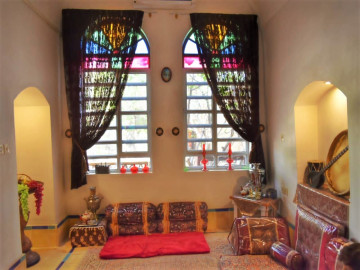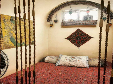 این خانه حیاط دار سنتی دو خواب در مرکزشهر دارای دو سالن مجزا مدرن و سنتی است که هر دو اتاق به شکل تو در تو به سالن ها متصل می شوند همچنین سیستم سرمایشی نیز از طریق همین ورودی ها در کل ساختمان پخش می شود . حیاط این خانه سنتی با تخت های چوبی و فضای سبز زیبا بسیار دلنشین و دنج و برای گذراندن اواقات فر